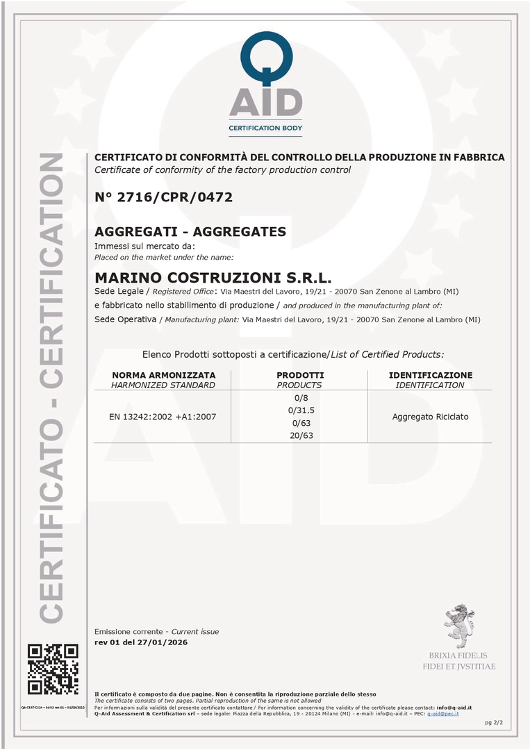 CERTIFICATO CE AGGREGATI QAID